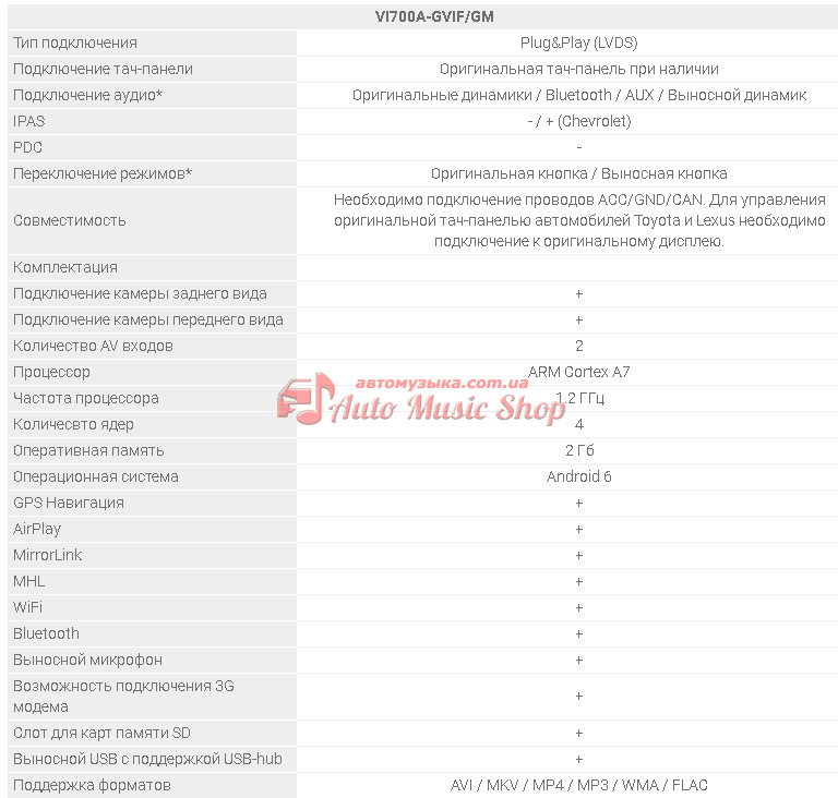 При використанні мультимедійного інтерфейсу Gazer VI700A, штатний головний пристрій вашого автомобіля готове до відтворення абсолютно будь-яких форматів аудіо і відео, включаючи найбільш популярні FLAC, ALAC, MKV, стандартні формати MP3, MP4, AVI і багато інших.