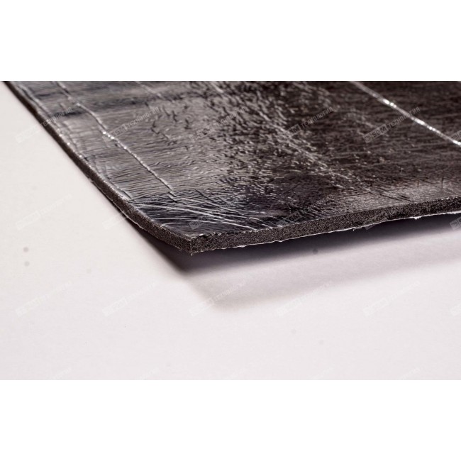 Матеріал являє собою спінений синтетичний каучук з закритою пористої структурою з клейовим шаром, укріплений синтетичним полотном і захищений металізованої антиадгезійною плівкою. Професійний шумоізоляційний матеріал для акустичного тюнінгу.