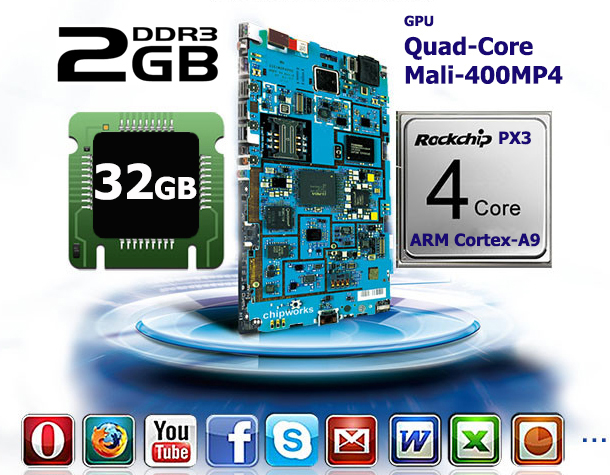 RockChip PX3 Quad-Core ARM Cortex-A9, 1.6GHz
