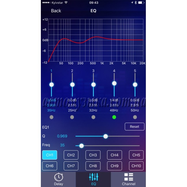 - Поканального регулювання еквалайзера (31 смуга параметричний)