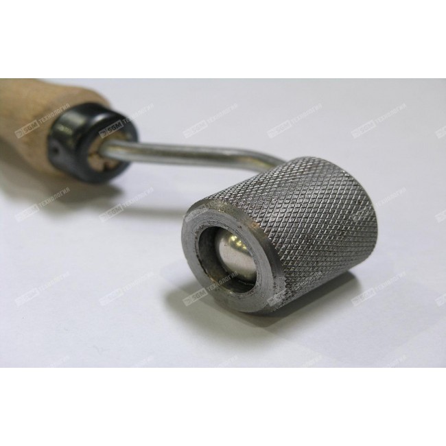 Завдяки вільному краю робочого барабана, вібропоглинач накочується по всій площі поверхні, включаючи краю і переходи. Дерев'яна ручка має правильну анатомічну форму, вбирає вологу і не зісковзує.